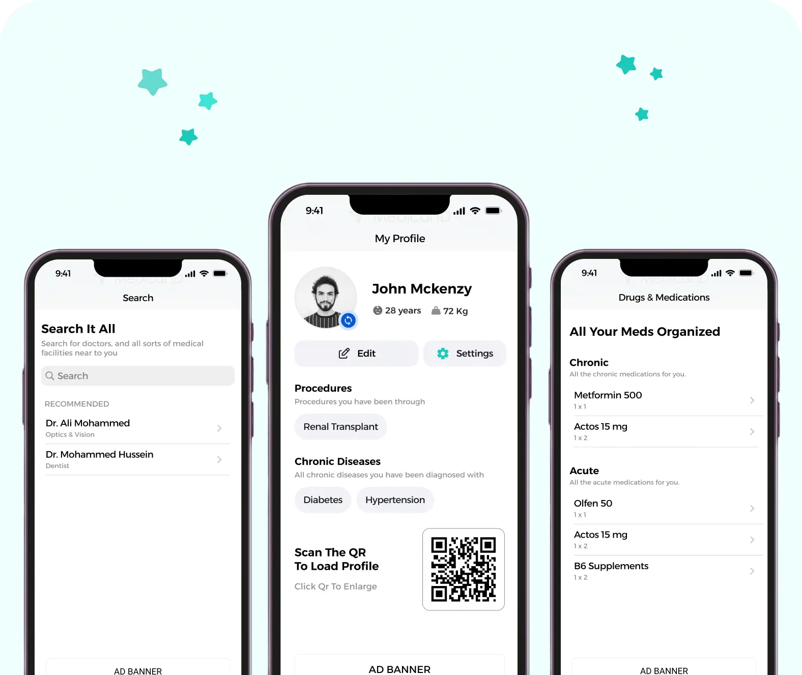 الهوية الطبية هي مجموعة من التطبيقات عبر الأنظمة (ويب، أندرويد، وآي أو إس) تخدم الغرض من زيادة جودة الحياة للجميع من خلال دمج نظام مركزي للسجلات الطبية يُحفظ بشكل رقمي يربط كل فرع من فروع المنظومة الطبية معًا بسلاسة، ولتمكين المستخدمين من تتبع حالتهم الطبية في الوقت الحقيقي، والحصول على مساعدة في تناول الأدوية والعثور على الأطباء المناسبين مع جعله من الصعب على أي م،ظف طبي أن يخطئ في التشخيص، حيث يمكن الوصول إلى تفاصيل سنوات عن أي مريض بنقرة واحدة، انظر إلى مقاطع الفيديو أدناه لمزيد من المعلومات حول المشروع واستخدامه. يعمل تطبيق هوية الطبية بفخر في العراق منذ عام 2024، حيث يتوفر تطبيق الطبيب والسكرتير والمختبر والصيدلية وتطبيق المريض والمزيد قريبًا!