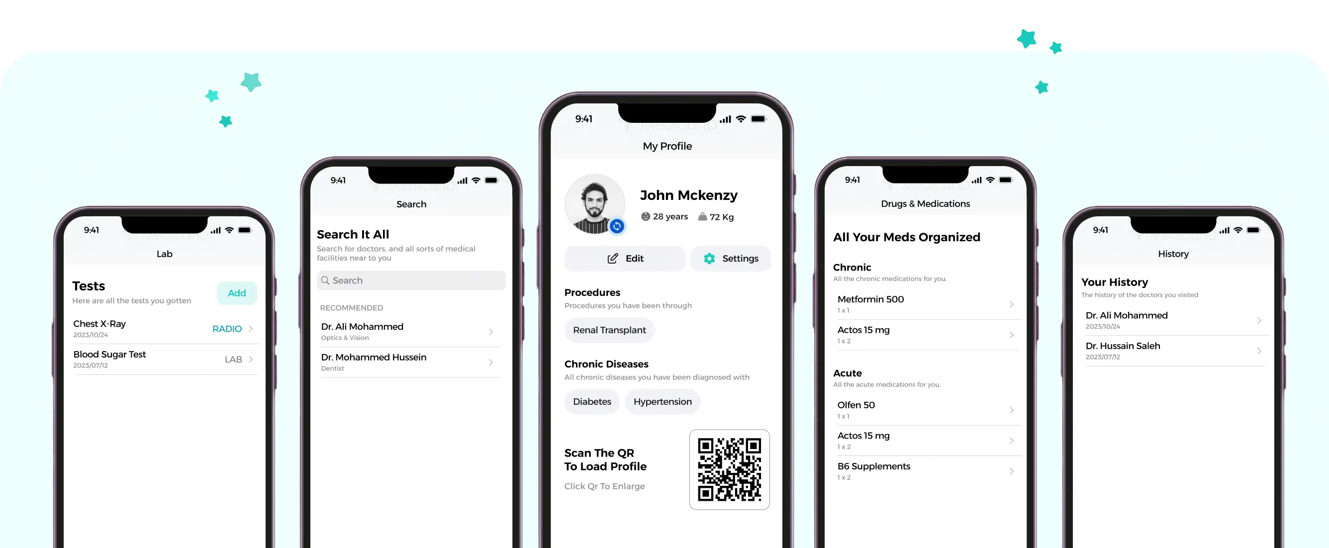 احصل على تجربة رائعة باستخدام تطبيق المريض للهوية الطبية، فهو يعتني بكل شيء بالنسبة لك ويعرض كل التفاصيل التي تحتاجها، مع تخطيط سهل الاستخدام وتجربة بصرية جميلة. سيساعدك في الوصول إلى أين تريد بأسرع وقت!